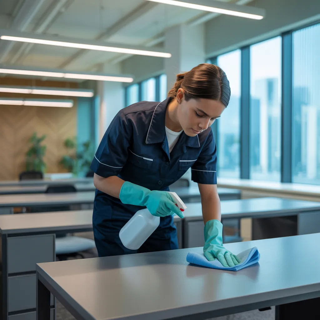 Environmentally friendly cleaning products typically include plant-based detergents, vinegar, baking soda, essential oils, and plant-based surfactants. These products reduce environmental impact while thoroughly cleaning surfaces, encouraging a healthier workspace and reducing exposure to hazardous chemicals.